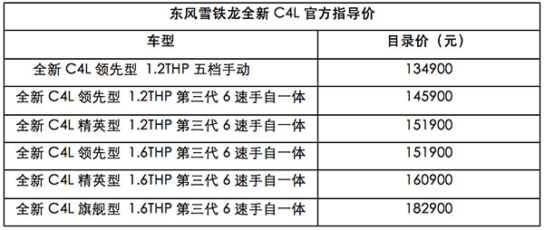 作为东风雪铁龙布局中级车市场的重要车型,全新C4L正式上市,从7月29日起在东风雪铁龙全国各经销商网点正式销售,售价在13.49万元-18.29万元之间。此次全新C4L共计推出6款车型,分别搭载1.2THP和1.6THP两款排量的发动机,全面实现涡轮化。