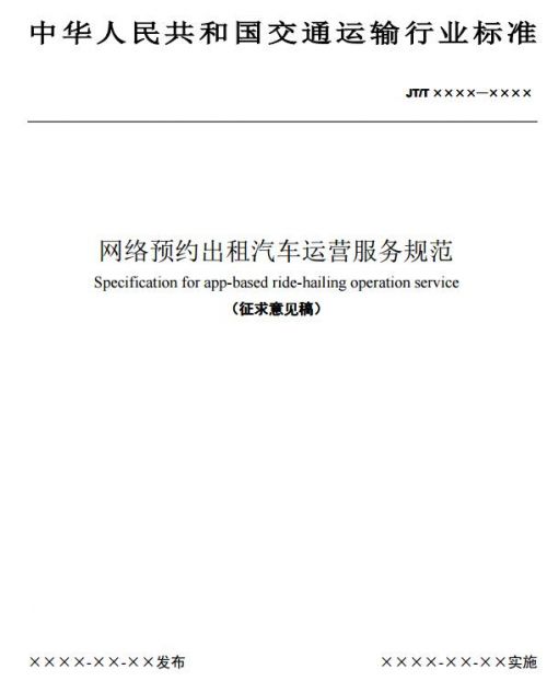 交通运输部今日在官网发布《网络预约出租汽车运营服务规范》(意见征求稿),《意见稿》指出网络预约车辆应取得当地公安部门核发的机动车牌照和行驶证,取得当地出租汽车行业管理部门核发的营运证件。