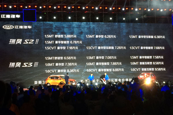 9月20日,江淮汽车隆重启动首届江淮瑞风粉丝嘉年华,并在嘉年华现场正式推出第三代瑞风S3和第二代瑞风S2。第三代瑞风S3售价6.58万-9.58万。第二代瑞风S2售价5.88万-7.68万。这两款极具竞争力的产品同步升级上市成为了今年小型SUV市场最受关注的事件之一,而第三代瑞风S3以及第二代瑞风S2的全新产品力表现也再度刷新了同级别市场的价值标杆,将使已经白热化的市场竞争再度升温。