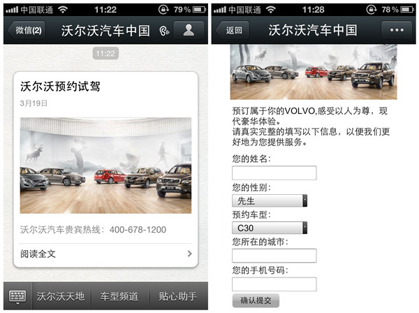 作为市场营销手段最多样化的行业之一,微信已经被系统地运用到汽车行业每一个环节当中。比如在新车型发布的预热阶段;上市后产品信息的完善、分享;企业信息的及时推送;精准用户的维护等方面。更有一些汽车企业、品牌以车友会的形式开辟了单独的公众平台,来对车友进行细致维护,并通过车友的转发、分享,提升本企业、品牌的口碑。
