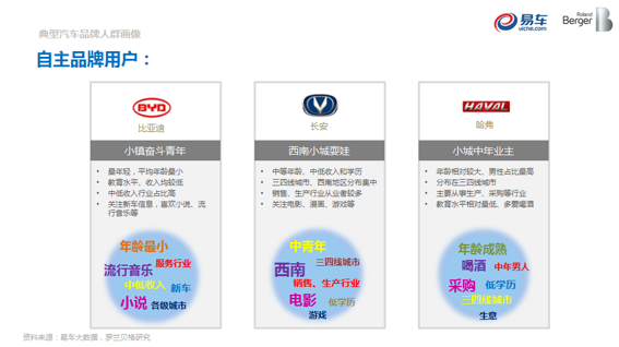 通过购车用户大数据分析,综合人口属性、兴趣、地域、预购等多维信息,勾勒典型品牌用户画像,提炼出三大类具有鲜明特征的汽车品牌用户群体。